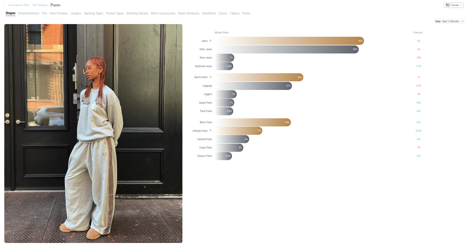 Leveraging extensive feedback and market monitoring, we have enriched our pants and shorts architecture in Market Insights with over 500 new pants trends and more than 200 new shorts trends. The enhanced AI module now includes attributes such as embellishments, hem finishes, pockets, stitching details, waist accessories, waist attributes, and newer fit types. This comprehensive data enables fashion and sportswear brands to identify and capitalize on emerging trends like frayed hem denim Shorts, elasticated hem cargo pants, buckle belted cargo pants, elastic waist running shorts, and mesh insert leggings.