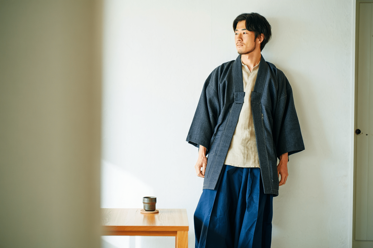 This early cultural exchange was not one-directional. By the mid-20th century, American workwear and casual dress began to influence Japan, creating the style movement known as Amekaji (“American casual”). Japanese designers reinterpreted denim, varsity jackets, and military surplus through their meticulous eye for craft and detail, resulting in garments that carried both a sense of heritage and reinvention. As these exchanges deepened, Japanese traditional garments gradually seeped into streetwear. The haori jacket, noragi work coats, and wide-legged hakama trousers became quiet touchpoints in casual fashion, influencing silhouettes that today feel at once modern and timeless.